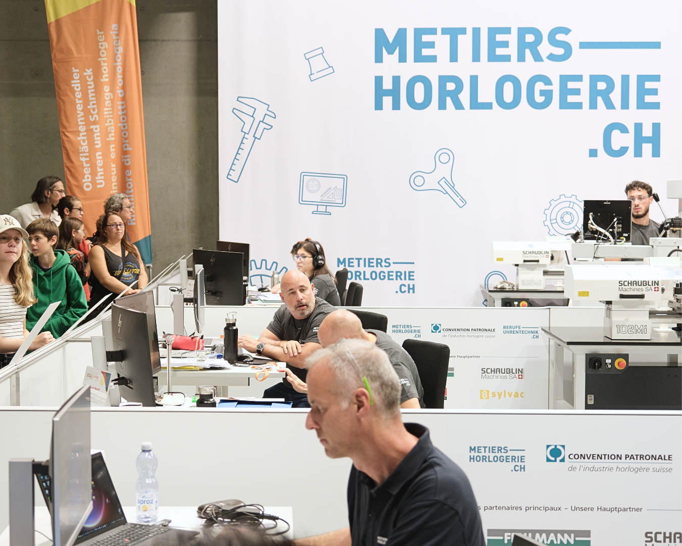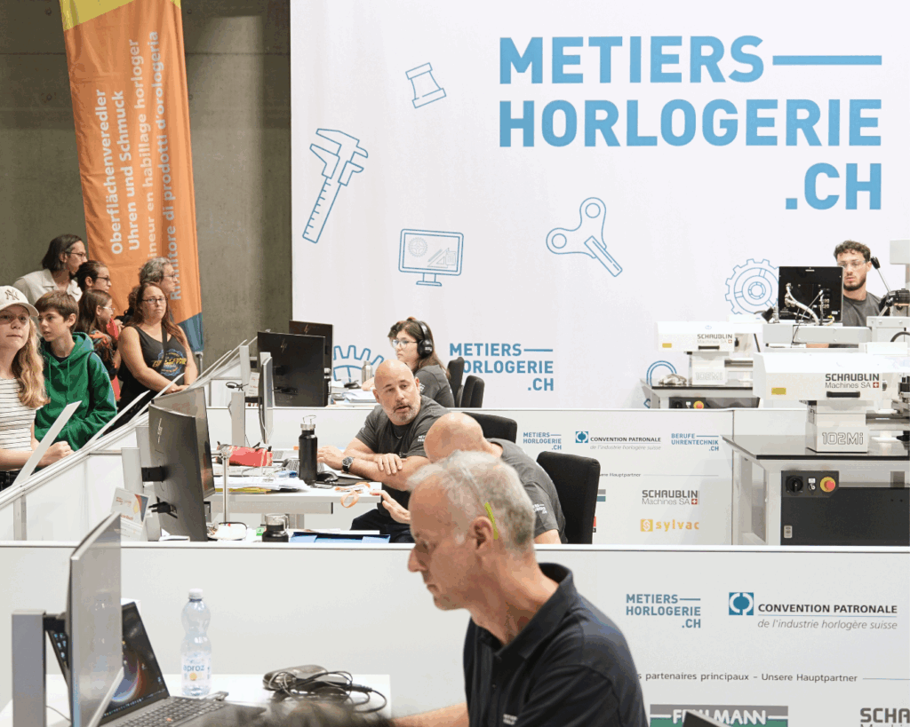 Der Bereich metiers-horlogerie.ch, der im Zentrum dieser riesigen Ausstellung angesiedelt war, erwies sich als Publikumsmagnet. Dank Vorführungen, Gesprächen mit Lernenden, Berufsbildnerinnen und Berufsbildnern sowie der Möglichkeit, im Obergeschoss selbst in die Berufswelten einzutauchen, konnten Tausende von Jugendlichen die Vielfalt und die Ausbildungsmöglichkeiten der Branche konkret entdecken. «Ich habe mich schon länger für die Uhrmacherei interessiert. Aber als ich hier mein erstes Uhrwerk polierte, fühlte ich mich bestätigt: Das will ich zu meinem Beruf machen!», erklärte der bald 14-jährige Nolan, der mit seiner Mutter gekommen war.