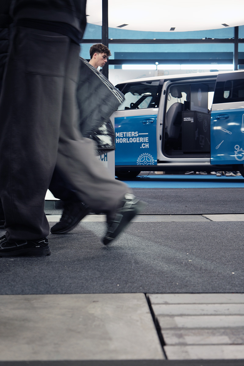 La réalisation collective d’un bracelet, étape après étape, a illustré de manière concrète la collaboration interprofessionnelle qui caractérise l’industrie horlogère. Au centre du stand, une expérience interactive embarquée dans un véhicule spécialement aménagé a captivé un public constamment au rendez-vous. Là encore, le flux de visiteurs n’a jamais ralenti, au point de solliciter fortement les stocks préparés en amont, confirmant la pertinence du dispositif.