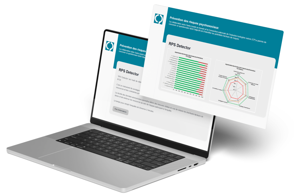 Sous forme de web app sécurisée, avec un accès aux données strictement réservé à l’entreprise et un hébergement en Suisse garantissant la confidentialité, le RPS Detector a été conçu pour s’intégrer facilement dans toutes les entreprises tout en respectant leurs contraintes sécuritaires.